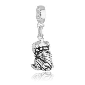 MODELO: Berloque do cachorro Buldogue banhado com 100 milésimos de prata 925.