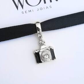 MODELO: Berloque Câmera Fotográfica / Fotografia banhado com 100 milésimos de prata 925.