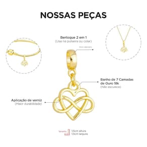 MODELO: Berloque de coração infinito banhado com 7 milésimos de ouro 18k.