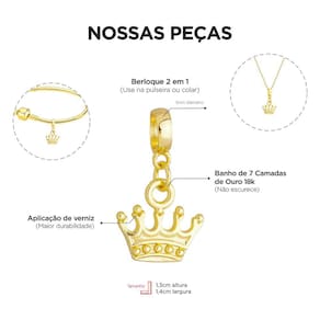 MODELO: Berloque Coroa / Princesa / Rainha banhado com 7 milésimos de ouro 18k.