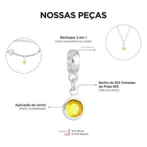 MODELO: Berloque de cristal strass amarelo banhado com 100 milésimos de prata 925.