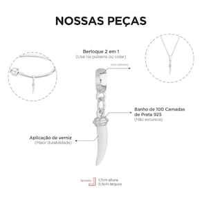 MODELO: Berloque de dente de sabre banhado com 100 milésimos de prata 925.