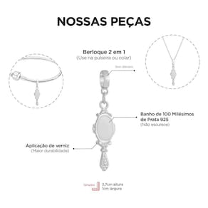 MODELO: Berloque de Espelho prateado banhado com 100 milésimos de prata 925.