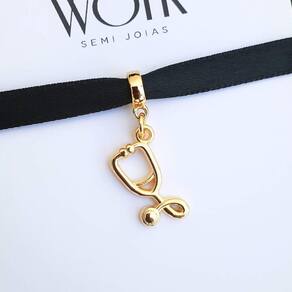 MODELO: Berloque Estetoscópio Medicina Enfermagem banhado com 7 milésimos de ouro 18k.