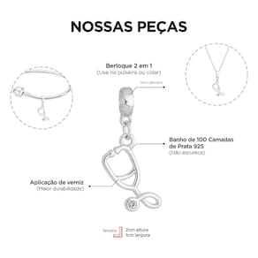 MODELO: Berloque Estetoscópio Medicina Enfermagem banhado com 100 milésimos de prata 925.