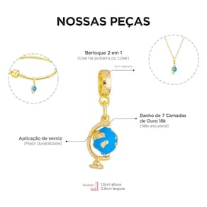 MODELO: Berloque Globo Terrestre / Viagem banhado com 7 milésimos de ouro 18k.