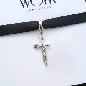 MODELO: Berloque Jesus Cristo Cruz banhado com 100 milésimos de prata 925.