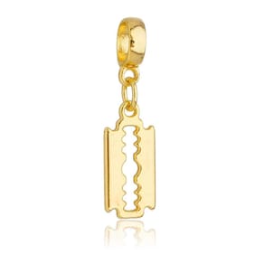 MODELO: Berloque de lâmina de barbear banhado com 7 milésimos de ouro 18k.