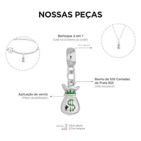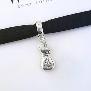 MODELO: Berloque Saco de Dinheiro / Sorte banhado com 100 milésimos de prata 925.