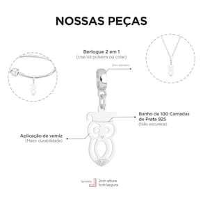 MODELO: Berloque de Coruja Símbolo da Profissão Professora o banhado com 100 milésimos de prata 925.