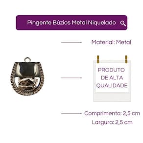 Pingente Búzios 2,5 cm em Metal Niquelado Este lindo pingente traz a beleza e a energia do búzio, simbolizando proteção, sorte e conexão com o mar. Feito em metal niquelado de alta qualidade, possui um acabamento sofisticado e delicado, perfeito para complementar qualquer look. Com 2,5 cm de tamanho, é ideal para usar tanto no dia a dia quanto em ocasiões especiais. Medidas do pingente: Comprimento: 2,5 cm Largura: 2,5 cm Material: Metal Niquelado Imagens meramente ilustrativas. Gratidão e Sucesso Tire todas as suas Dúvidas antes de concluir a compra. Iremos responder o mais breve possível. Embalagem de Envio: Caixa de papelão ondulado, plástico bolha, conforme necessidade do produto. Respostas das dúvidas mais frequentes na ordem: R1: Já realizamos milhares de entregas em todo o Brasil, somos especialistas no que fazemos. R2: Assim que seu pedido for despachado, esta plataforma envia para você o código de rastreamento. R3: Enviamos o produto 100% inspecionado e conferido em nosso checkout e são embalados em embalagem de papelão e plástico bolha. R4: O tempo de entrega irá depender totalmente do seu CEP, todos os nossos produtos saem de Capital. R5: Iremos despachar o seu produto o mais rápido possível, assim que for confirmado pela plataforma, enviamos em até 24h. R6: Nós queremos a sua satisfação, qualquer problema iremos te auxiliar em nossos canais de comunicações. Marca: Não Informado