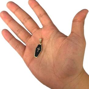 O Pingente Caixão Preto 2,6 cm em Metal Dourado da Bialluz é de alta qualidade feitos de forma artesanal com muito carinho. É perfeito para qualquer pessoa. Cheia de boas energias e carregada de fé nosso pingente emanará muita paz em sua vida!