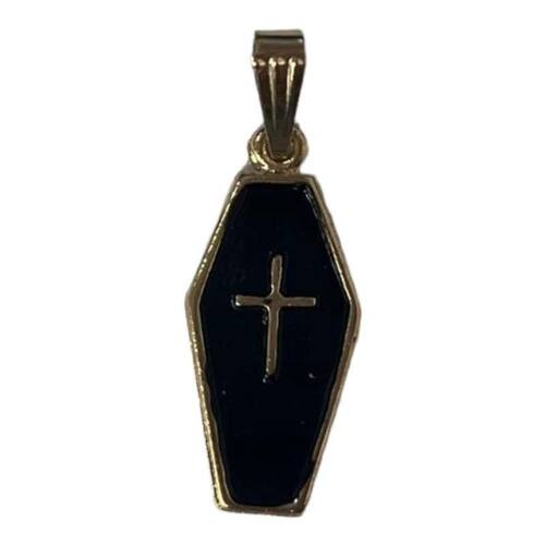 O Pingente Caixão Preto 2,6 cm em Metal Dourado da Bialluz é de alta qualidade feitos de forma artesanal com muito carinho. É perfeito para qualquer pessoa. Cheia de boas energias e carregada de fé nosso pingente emanará muita paz em sua vida