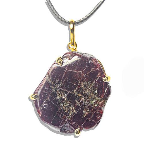 Pingente Chapa Rodolita Granada Montagem Garra Dourada