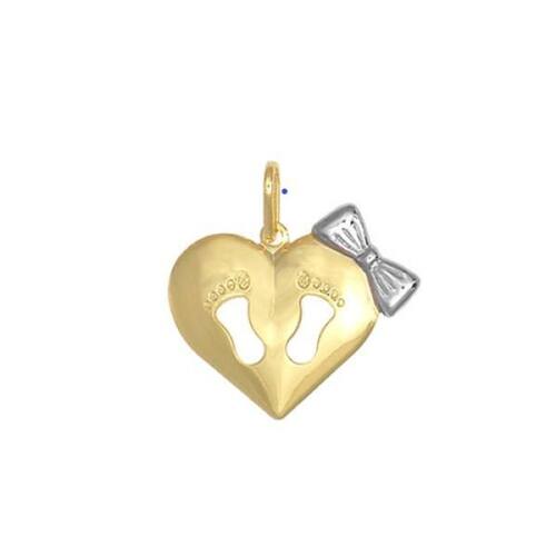 Pingente Coração com Pezinho Vazado e Lacinho com ródio -largura: 2.0 cm. -comprimento: 2.5 cm. -peso: 1.8 gr. Folheado a Ouro - Dicas para melhor conservar seu produto: Recomenda-se não usá-lo durante limpeza doméstica, banho de chuveiro, piscina, praia ou qualquer outra situação . Evite contato com substância ácidas, que contenham álcool, assim como outras substância químicas e/ou abrasivas como lixa, palha de aço, etc. Guarde-o separadamente dentro de sua própria embalagem. Seguindo essas recomendações seu produto durará muito tempo sem perder a beleza e qualidade. de 6 meses no banho e inclusa. Marca: Não Informado