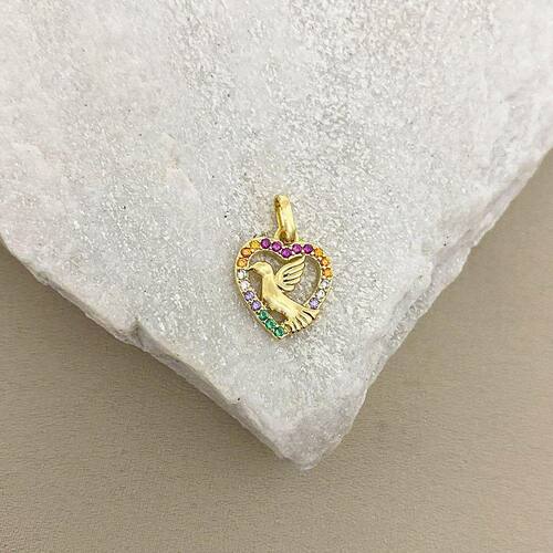 Pingente Coração Espírito Santo Cravejado com Zircônia Banhado a Ouro