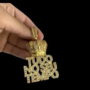 Pingente Coroa Tudo No Seu Tempo G - Banhado A Ouro 18K