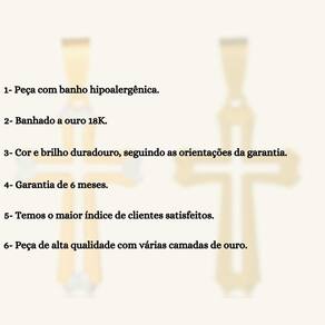 Características do Pingente Cruz Paixão de Cristo Banhado a Ouro 18K Altura: 4cm Largura: 2,5cm Peso:2,7 gramas Banhada a Ouro 18k 10 Milésimo