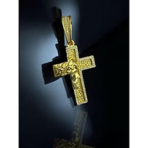 Pingente Cruz Rosto Jesus Cristo Cravejada G Banhado Ouro Detalhes do Produto: Material: ligas metálicas de alta qualidade, especialmente tratadas para fixação e absorção do ouro, com acabamento em verniz protetor. Aparência: visual idêntico ao ouro maciço. Produção: artesanal, com atenção meticulosa aos detalhes. Banho: 10 camadas espessas de ouro 18k, finalizadas com verniz antialérgico . Elos: soldados varia conforme o modelo . Pedras: zircônias brilhantes cravejadas quando aplicável . Tamanhos Disponíveis: Cordões Masculinos: 70cm padrão e 60cm sob consulta/Pedido Via Chat . Cordões Femininos: 50cm padrão e 45cm sob consulta/Pedido Via Chat . Pulseiras: 21cm padrão ; tamanhos de 18cm a 23cm sob consulta/Pedido Via Chat. Pingentes: conforme imagens; consulte para mais detalhes via chat. Espessuras Recomendadas para Cordões / Pingentes: P: 1mm a 4mm M: 4mm a 8mm G: 6mm a 13mm Gg: 12mm a 18mm Incluso na Compra: Saquinho de organza para armazenamento seguro. Caixa elegante, perfeita para presente. Cupom de desconto para a próxima compra. Flyer com outros produtos da coleção. Carta de agradecimento personalizada. Adesivo da marca ToJoia18k. Informações Adicionais: : 6 meses termos acompanham o produto . Devolução: 7 dias para devolução sem questionamentos. Envio: despacho em até 24 horas úteis após confirmação do pagamento. Cuidados com a Peça: Evite contato com produtos químicos; aguarde o perfume secar antes de usar. Evite contato com shampoo, condicionadores e suor excessivo. Armazene em local seco, preferencialmente no saquinho de organza fornecido. Uso no mar e piscina é permitido; lave com água corrente e sabão neutro após. Por que Escolher a ToJoia18k Semi-joias luxuosas que combinam estilo, qualidade e sofisticação. Banho espesso de ouro 18k, garantindo brilho duradouro e acabamento impecável. Design exclusivo e produção artesanal, perfeitos para qualquer ocasião. Materiais premium que asseguram durabilidade. Ao escolher uma semi-joia ToJoia18k, você investe em qualidade, elegância e uma experiência única. Aguardamos sua compra Observação: pode ocorrer variação no fecho raramente . Imagens reais, sem edição. Qualquer dúvida, estamos à disposição para esclarecimentos. Marca: Tojoia18K