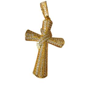 Pingente Cruz Trançada Cravejada - Banhado A Ouro 18K