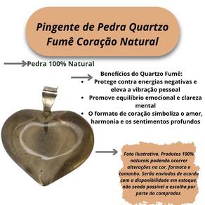 Pedra Quartzo Fumê Natural de alta qualidade Design de Coração, simbolizando amor e proteção Acessório elegante e versátil, ideal para todos os estilos Perfeito para quem deseja uma energia mais equilibrada e serena
