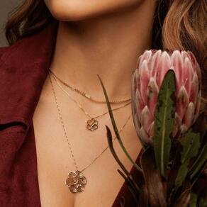 Cada pétala e detalhe intricado são meticulosamente detalhados em ouro 18K, que combinado com uma corrente em ouro 18K dá à look um brilho luxuoso e uma durabilidade incomparável. com um tamanho de 1,5cm, o pingente é uma declaração de estilo e requinte.