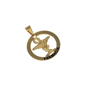 O Pingente Minha Profissão Farmácia Farmacêutico Folheado é perfeito para os profissionais da área farmacêutica que desejam demonstrar seu amor pela profissão. Com aproximadamente 2 cm de tamanho, esse pingente é delicado e elegante.
