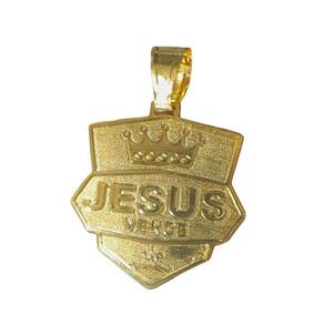 Pingente Jesus Vence - Banhado a ouro 18k Detalhes do Produto: Material: ligas metálicas de alta qualidade, especialmente tratadas para fixação e absorção do ouro, com acabamento em verniz protetor. Aparência: visual idêntico ao ouro maciço. Produção: artesanal, com atenção meticulosa aos detalhes. Banho: 10 camadas espessas de ouro 18k, finalizadas com verniz antialérgico . Elos: soldados varia conforme o modelo . Pedras: zircônias brilhantes cravejadas quando aplicável . Tamanhos Disponíveis: Pingentes: conforme imagens; consulte para mais detalhes via chat. Incluso na Compra: Saquinho de organza para armazenamento seguro. Caixa elegante, perfeita para presente. Cupom de desconto para a próxima compra. Flyer com outros produtos da coleção. Carta de agradecimento personalizada. Adesivo da marca ToJoia18k. Informações Adicionais: : 6 meses termos acompanham o produto . Devolução: 7 dias para devolução sem questionamentos. Envio: despacho em até 24 horas úteis após confirmação do pagamento. Cuidados com a Peça: Evite contato com produtos químicos; aguarde o perfume secar antes de usar. Evite contato com shampoo, condicionadores e suor excessivo. Armazene em local seco, preferencialmente no saquinho de organza fornecido. Uso no mar e piscina é permitido; lave com água corrente e sabão neutro após. Por que Escolher a ToJoia18k Semi-joias luxuosas que combinam estilo, qualidade e sofisticação. Banho espesso de ouro 18k, garantindo brilho duradouro e acabamento impecável. Design exclusivo e produção artesanal, perfeitos para qualquer ocasião. Materiais premium que asseguram durabilidade. Ao escolher uma semi-joia ToJoia18k, você investe em qualidade, elegância e uma experiência única. Aguardamos sua compra Qualquer dúvida, estamos à disposição para esclarecimentos. Marca: Não Informado