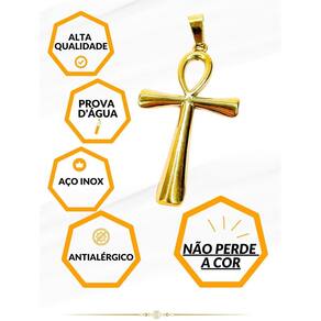 Pingente masculino laço cruz egípcia ankh símbolo vida dourado aço inox antialérgico religioso Pingente masculino laço cruz egípcia ankh símbolo vida dourado aço inox antialérgico Pingente masculino em aço modelo cruz egípcia ankh a prova dágua , é perfeito para levar consigo a esperança e fé para o dia a dia; Pingente para homens e mulheres. Não perde a cor, não fica preto, não causa alergia. ====================================== Fotos reais do produto na galeria Detalhes técnicos: Marca: visujóias Modelo: pingente cruz Espessura pingente: 1mm Comprimento: 4cm Incluso: 1 unidade pingente Material: aço inox Código do produto sku : 3497 : 6 meses. Todas as peças possuem tratamento antialérgico =================================================== P:minha compra é segura R:toda compra que é feita aqui está em ambiente seguro, isso significa que se caso ocorra algum imprevisto faremos o estorno. R: sim. P: produto é a prova d'água R: sim, pode usar em piscinas e praias que não escurece. P: tem R: sim, todos os nossos produtos tem de 6 meses, contra defeitos de fabricação. Todas as informações de cuidados são enviados junto com o produto. P: posta em quanto tempo P: posso trocar se não servir R: sim, enviamos nosso contato junto com o produto para orientação sobre troca. P: posso devolver se não gostar R: sim, caso não goste do produto é só entrar em contato conosco que iremos orientá-lo como efetuar a devolução. Dúvidas Pergunte à vontade, estamos aqui. ficaremos felizes em responder rapidamente. Aguardamos sua compra e estamos ao seu dispor : Marca: Visujoias