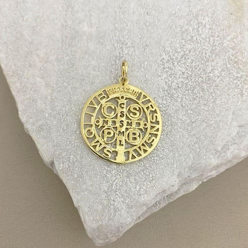 Pingente Medalha de São Bento Vazada Banhado a Ouro
