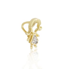 O pingente Menina Mini com Diamante Ouro 18k é um acessório para todas as ocasiões sendo excelente para presentear em todas as datas especiais. sua forma mais comum de uso, é a corrente com pingente, porém, a elegância dessa joia pode ser estendida ao ser anexada a uma pulseira de ouro.