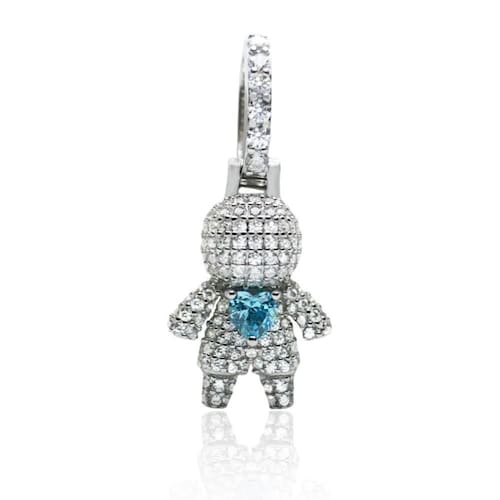 Pingente Menino Coração 3 Cm Com Água Marina Com Zircônia Em Prata O pingente Menino Coração em prata por seu tamanho 3 cm é um acessório para todas as ocasiões, sendo excelente para presentear em todas as datas especiais. Sua forma mais comum de uso, é a corrente com pingente, porém, a elegância dessa joia pode ser estendida ao ser anexada a uma pulseira .