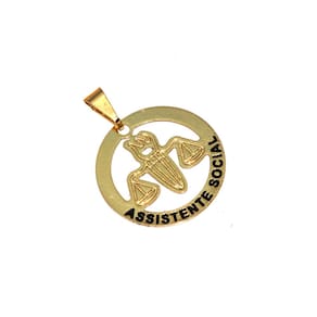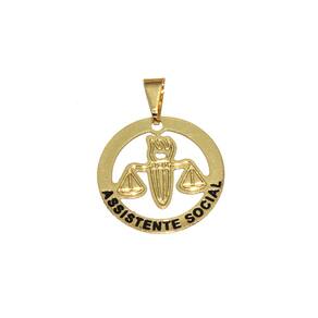 Pingente Minha Profissão Serviço Social Folheado Ouro 18k
