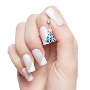 Com formato da silhueta da imagem de Nossa Senhora, com detalhes feitos a laser, esse berloque é uma verdadeira obra de arte. O manto azul esmaltado e os adornos em Prata dão um toque especial à peça, enquanto as mãos unidas, o terço no peito e a coroa amarela simbolizam a pureza e a devoção.