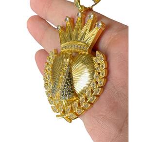 Pingente Nossa Senhora Coração - Banhado a ouro 18k Detalhes do Produto: Material: ligas metálicas de alta qualidade, especialmente tratadas para fixação e absorção do ouro, com acabamento em verniz protetor. Aparência: visual idêntico ao ouro maciço. Produção: artesanal, com atenção meticulosa aos detalhes. Banho: 10 camadas espessas de ouro 18k, finalizadas com verniz antialérgico . Elos: soldados varia conforme o modelo . Pedras: zircônias brilhantes cravejadas quando aplicável . Tamanhos Disponíveis: Pingentes: conforme imagens; consulte para mais detalhes via chat. Incluso na Compra: Saquinho de organza para armazenamento seguro. Caixa elegante, perfeita para presente. Cupom de desconto para a próxima compra. Flyer com outros produtos da coleção. Carta de agradecimento personalizada. Adesivo da marca ToJoia18k. Informações Adicionais: : 6 meses termos acompanham o produto . Devolução: 7 dias para devolução sem questionamentos. Envio: despacho em até 24 horas úteis após confirmação do pagamento. Cuidados com a Peça: Evite contato com produtos químicos; aguarde o perfume secar antes de usar. Evite contato com shampoo, condicionadores e suor excessivo. Armazene em local seco, preferencialmente no saquinho de organza fornecido. Uso no mar e piscina é permitido; lave com água corrente e sabão neutro após. Por que Escolher a ToJoia18k Semi-joias luxuosas que combinam estilo, qualidade e sofisticação. Banho espesso de ouro 18k, garantindo brilho duradouro e acabamento impecável. Design exclusivo e produção artesanal, perfeitos para qualquer ocasião. Materiais premium que asseguram durabilidade. Ao escolher uma semi-joia ToJoia18k, você investe em qualidade, elegância e uma experiência única. Aguardamos sua compra Qualquer dúvida, estamos à disposição para esclarecimentos. Marca: Não Informado