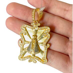 Pingente Nossa Senhora Cravejada - Banhado a ouro 18k Detalhes do Produto: Material: ligas metálicas de alta qualidade, especialmente tratadas para fixação e absorção do ouro, com acabamento em verniz protetor. Aparência: visual idêntico ao ouro maciço. Produção: artesanal, com atenção meticulosa aos detalhes. Banho: 10 camadas espessas de ouro 18k, finalizadas com verniz antialérgico . Elos: soldados varia conforme o modelo . Pedras: zircônias brilhantes cravejadas quando aplicável . Tamanhos Disponíveis: Pingentes: conforme imagens; consulte para mais detalhes via chat. Incluso na Compra: Saquinho de organza para armazenamento seguro. Caixa elegante, perfeita para presente. Cupom de desconto para a próxima compra. Flyer com outros produtos da coleção. Carta de agradecimento personalizada. Adesivo da marca ToJoia18k. Informações Adicionais: : 6 meses termos acompanham o produto . Devolução: 7 dias para devolução sem questionamentos. Envio: despacho em até 24 horas úteis após confirmação do pagamento. Cuidados com a Peça: Evite contato com produtos químicos; aguarde o perfume secar antes de usar. Evite contato com shampoo, condicionadores e suor excessivo. Armazene em local seco, preferencialmente no saquinho de organza fornecido. Uso no mar e piscina é permitido; lave com água corrente e sabão neutro após. Por que Escolher a ToJoia18k Semi-joias luxuosas que combinam estilo, qualidade e sofisticação. Banho espesso de ouro 18k, garantindo brilho duradouro e acabamento impecável. Design exclusivo e produção artesanal, perfeitos para qualquer ocasião. Materiais premium que asseguram durabilidade. Ao escolher uma semi-joia ToJoia18k, você investe em qualidade, elegância e uma experiência única. Aguardamos sua compra Qualquer dúvida, estamos à disposição para esclarecimentos. Marca: Não Informado
