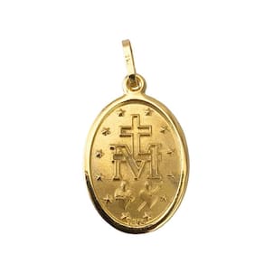 Para o Pingente Oval Nossa Senhora das Graças em Ouro 18K, pelo seu tamanho 2,5cm a sua forma mais comum de uso, é a corrente com pingente, porém, a elegância dessa joia pode ser estendida ao ser anexada a uma pulseira de ouro.