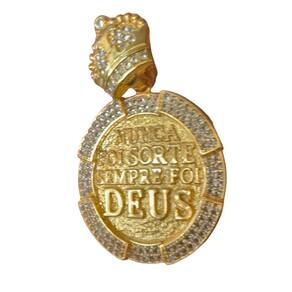 Pingente Nunca Foi Sorte Sempre foi Deus - Banhado a ouro Detalhes do Produto: Material: ligas metálicas de alta qualidade, especialmente tratadas para fixação e absorção do ouro, com acabamento em verniz protetor. Aparência: visual idêntico ao ouro maciço. Produção: artesanal, com atenção meticulosa aos detalhes. Banho: 10 camadas espessas de ouro 18k, finalizadas com verniz antialérgico . Elos: soldados varia conforme o modelo . Pedras: zircônias brilhantes cravejadas quando aplicável . Tamanhos Disponíveis: Pingentes: conforme imagens; consulte para mais detalhes via chat. Incluso na Compra: Saquinho de organza para armazenamento seguro. Caixa elegante, perfeita para presente. Cupom de desconto para a próxima compra. Flyer com outros produtos da coleção. Carta de agradecimento personalizada. Adesivo da marca ToJoia18k. Informações Adicionais: : 6 meses termos acompanham o produto . Devolução: 7 dias para devolução sem questionamentos. Envio: despacho em até 24 horas úteis após confirmação do pagamento. Cuidados com a Peça: Evite contato com produtos químicos; aguarde o perfume secar antes de usar. Evite contato com shampoo, condicionadores e suor excessivo. Armazene em local seco, preferencialmente no saquinho de organza fornecido. Uso no mar e piscina é permitido; lave com água corrente e sabão neutro após. Por que Escolher a ToJoia18k Semi-joias luxuosas que combinam estilo, qualidade e sofisticação. Banho espesso de ouro 18k, garantindo brilho duradouro e acabamento impecável. Design exclusivo e produção artesanal, perfeitos para qualquer ocasião. Materiais premium que asseguram durabilidade. Ao escolher uma semi-joia ToJoia18k, você investe em qualidade, elegância e uma experiência única. Aguardamos sua compra Qualquer dúvida, estamos à disposição para esclarecimentos. Marca: Não Informado