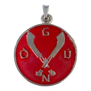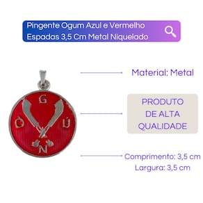 Pingente Ogum Azul e Vermelho Espadas 3,5 Cm Metal Niquelado