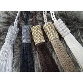 Pingente sofisticado Personalização Qualidade Premium Perfeito Para seu Ambiente Tamanho do Cordão: 1,20m Tamanho da Franja: 35cm Acabamento em Strass Material: Poliéster