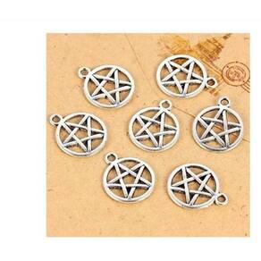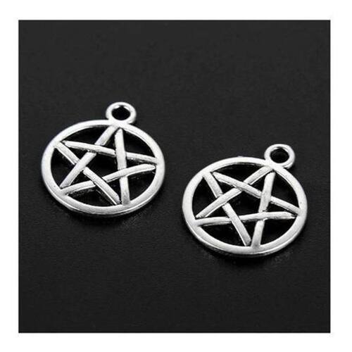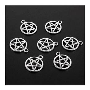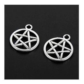 Pingente pequeno delicado pentagrama prateado vintage Cor: prateado Pingente delicado para colar, pulseira, brincos, prateado vintage com 25mm de altura por 20mm de largura.