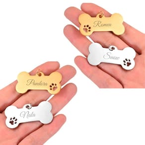 Pingente Plaquinha De Osso Identificação De Cão e Gato Cor: Prata Descrição: Pingente Plaquinha de Osso Identificação de Cão e Gato Leve, fofo e funcional, o Pingente de Osso é o acessório perfeito para dar um toque de charme e segurança ao seu pet Ideal para cães e gatos de todos os portes, ele pode ser como identificador com nome e telefone gravados ou apenas como um mimo estiloso na coleira. . Design versátil: Formato clássico de osso, combina com pets de todas as raças e tamanhos . Multiuso: Ideal para identificação ou como acessório decorativo . Compatível com coleiras: Fácil de prender, com argola resistente . Material durável: Fabricado em metal leve ou acrílico de alta qualidade personalize aqui conforme o seu produto . Opções de personalização: Espaço para gravar nome e telefone . Para cães e gatos: Um mimo cheio de amor para qualquer pet Informações: . Material: Aço Inoxidável . Tamanho: 0402mm . Cor: Dourada ou Prata . Tipo de metais: aço inoxidável sem Cinza e níquel,Não desligue a cor OBS: Escolha a cor correta, depois de finalizado mande as informações por favor. Desde já agradecemos. Um detalhe que faz a diferença no dia a dia do seu melhor amigo. Estilo, cuidado e carinho em um só acessório Marca: Não Informado