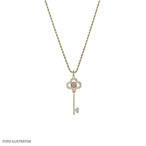 Pingente em Prata Revestido com Ouro 18K Chave com Zircônia Vermelha 37x15mm