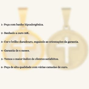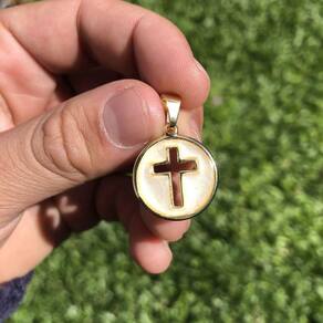 Pingente Redondo Cruz Madrepérola Banhada a Ouro 18KO Pingente Redondo Cruz Vazada tem apresentado o poder de incrementar um visual que seja mais básico, podendo realçar o estilo de qualquer homem de uma forma única.Quem usa o Pingente Redondo Cruz Vazada pode valorizar muito o seu visual em diversas composições, usando com uma tradicional calça jeans e com uma camiseta branca, além ainda de ser um diferencial em visuais que sejam mais incrementados. Características do Pingente Redondo Cruz Banhado a Ouro 18K e Detalhes em MadrepérolaAltura: 2cmLargura: 2cmPeso: 2,1 gramasBanhada a Ouro 18k 10 Milésimo com aplicação em Madreperóla Garantia:Garantia de 6 meses CDC Art. 26 I contra Defeitos de Fabricação.Para maiores informações consulte nossa pagina com os Termos de Garantia.
