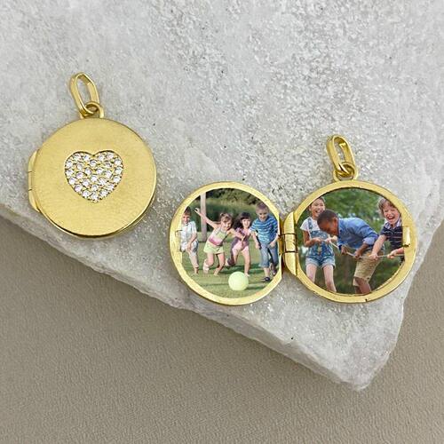 Pingente Relicário com Coração Cravejado de Zircônia Banhado a Ouro