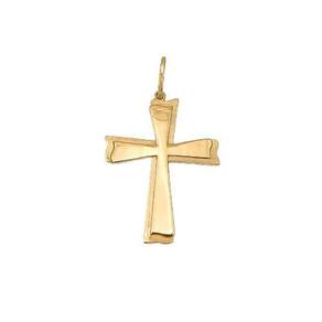 Pingente Cruz Palito Achatado Polido Em Ouro 18K