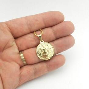 Pingente São Bento 20mm Folheada Ouro Pi190A Pingente São Bento 20mm 4Gr - Passante 3mm Beleza e Qualidade Sempre - Marca: Wnbijouterias - Modelo: São Bento - Modelo Fecho: Boia - Diâmetro: 20mm - Passante: 3mm - Peso: 4Gr - Acompanha Embalagem/Porta Jóia - SKU Vendedor: Pi190A Descrição Técnica: - Produto com banho super resistente. - Processo de Folheação em 3 Camadas de Ouro 18k= 750 - Não descasca, não perde a cor, qualidade garantida - Grande tempo de durabilidade. - Acompanha Embalagem/Porta Jóia - Todas as Fotos são Reais do Produto Acompanha: Certificado de - apenas para descascamento do banho da jóia - não cobre defeitos de mau uso, aranhões ou quebra de partes da jóia Contra Indicações: - Não usar creme, shampoo, perfume, protetor solar e outros cosméticos por cima da jóia. - Evitar banho de mar Devido a oxidação da água Salgada - Evitar banho de piscina Devido a oxidação do Cloro e outros produtos O que você sempre ganha em nossa loja - Qualidade Banho Super Resistente - Antialérgico Não usamos Níquel em nosso banho - Beleza e Acabamento Caimento perfeito ao usar Ean: 7804493548451