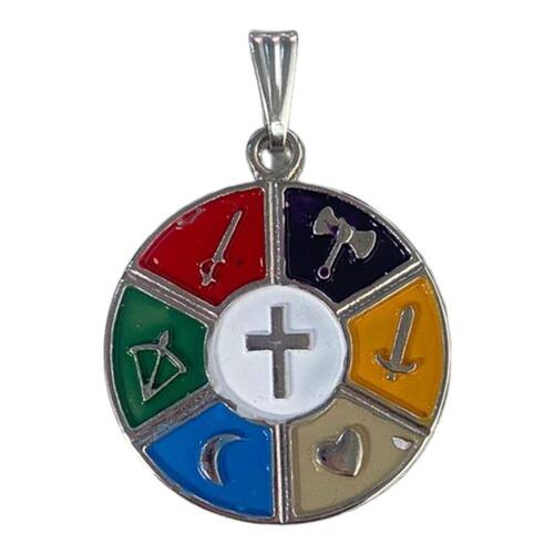 Pingente Sete Linhas Orixás Colorido 3,1 cm Niquelado