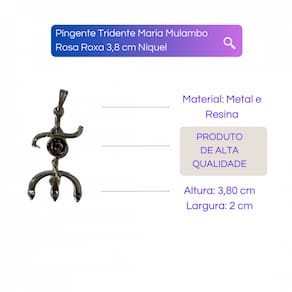 O Pingente Tridente Maria Mulambo Rosa Roxa da Bialluz é de alta qualidade feitos de forma artesanal com muito carinho. É perfeito para qualquer pessoa. Cheia de boas energias e carregada de fé nosso pingente emanará muita paz em sua vida!