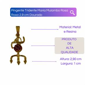 Pingente Tridente Maria Mulambo Rosa Roxa 2,9 cm Dourado